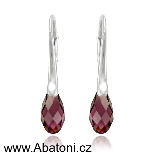 - Swarovski Elements Briolette krystal 13mm - Stříbrné náušnice visací fialová slza, kapky 31242.3 Amethyst (fialová, bordó, vínová)