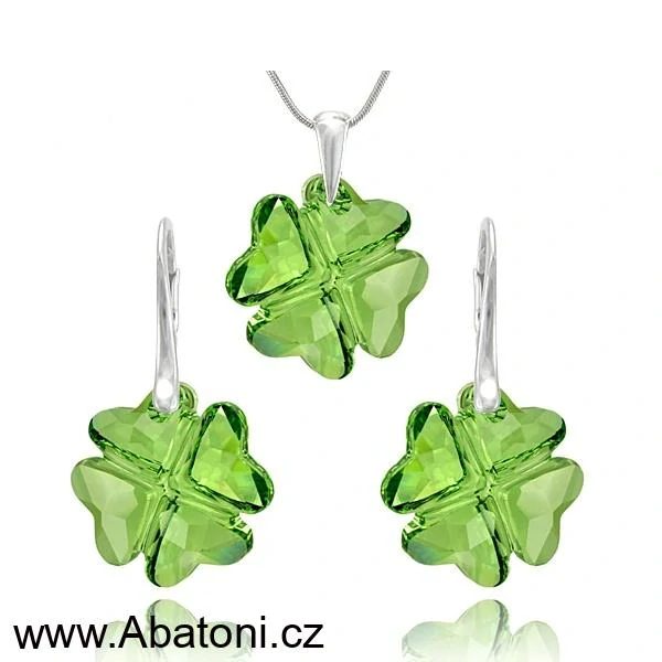 - Swarovski Elements Clover krystal 23mm - Stříbrná sada (set, souprava) náušnice a přívěsek s řetízkem zelený čtyřlístek 31262.1 Peridot (zelená světlá)
