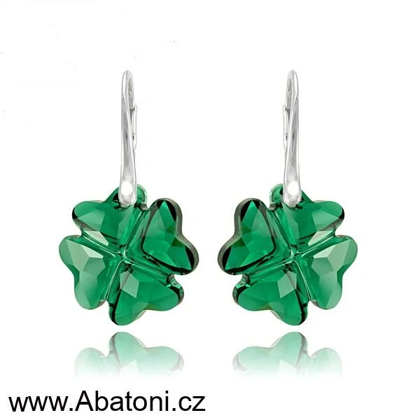 Swarovski Elements Clover krystal 23mm - Stříbrné náušnice visací zelený čtyřlístek 31262.1 Emerald (zelená tmavá, smaragdová, brčálová)Skladem659 Kč/ pár