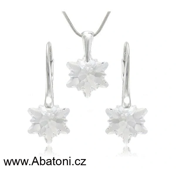 - Swarovski Elements Edelweiss Snowflake krystal 14mm - Stříbrná sada (set, souprava) náušnice a přívěsek s řetízkem bílá vločka, protěž, kytička 34221.1 Crystal (bílá, čirá, křišťálová)