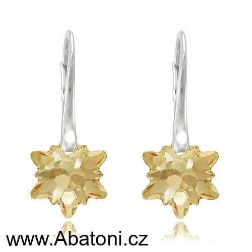 Swarovski Elements Edelweiss Snowflake krystal 14mm - Stříbrné náušnice visací zlatá vločka, protěž, kytička 31255.3 Golden Shadow (zlatá, světlá jantarová, zlatobéžová)Skladem399 Kč/ pár