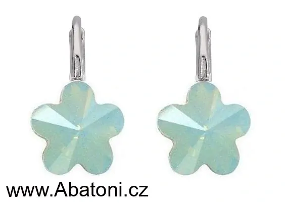 - Swarovski Elements Flower 10mm - stříbrné náušnice visací zelené kytičky, květinky 39143.3 Pacific Opal (zelená mléčná, mořská mátová)