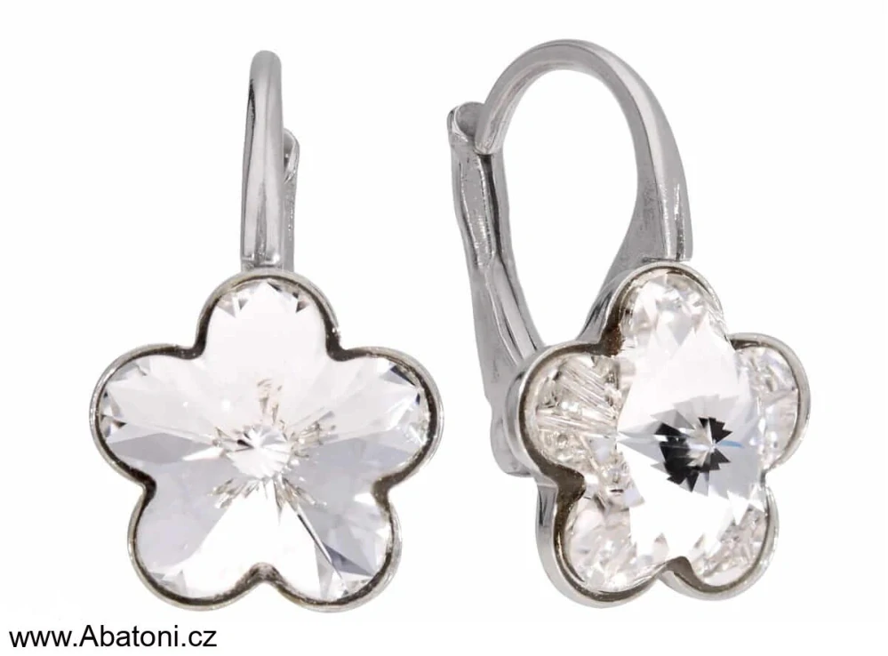 - Swarovski Elements Flower 10mm - stříbrné náušnice visací bílé kytičky, květinky 31080.1 Crystal (bílá, čirá, křišťálová)