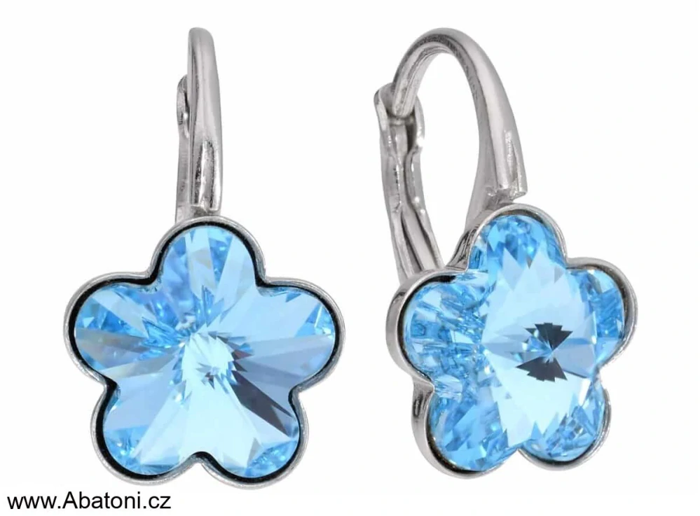 - Swarovski Elements Flower 10mm - stříbrné náušnice visací modré kytičky, květinky 31080.3 Aquamarine (modrá světlá, azurová, nebeská)