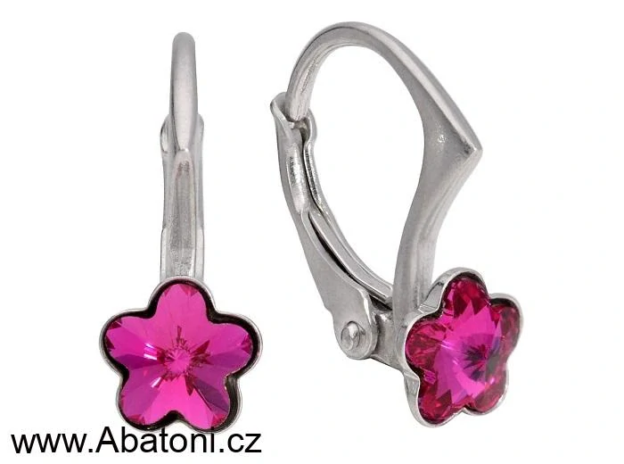 - Swarovski Elements Flower 6mm - Dětské stříbrné náušnice visací růžové kytičky, květinky 31080.3 Fuchsia (růžová tmavá, fuchsiová)