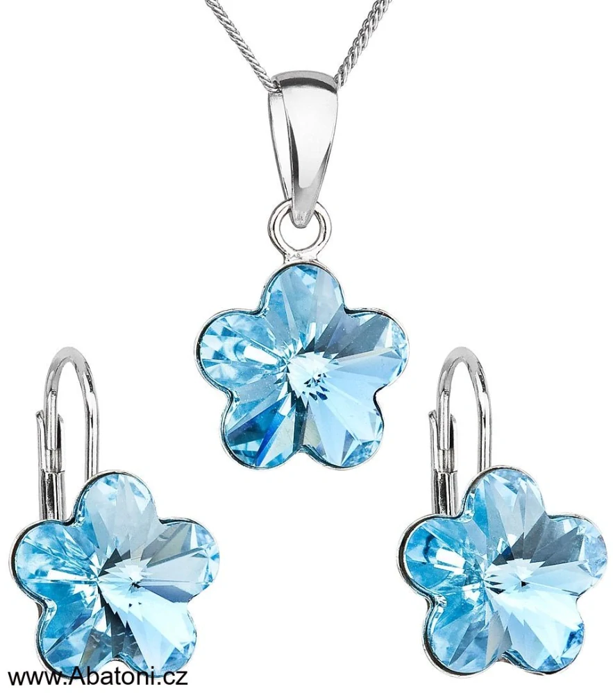 - Swarovski Elements Flower - Stříbrná sada (set, souprava) náušnice a přívěsek s řetízkem modrá kytička, květinka 39143.3 Aquamarine (modrá světlá, azurová, nebeská)