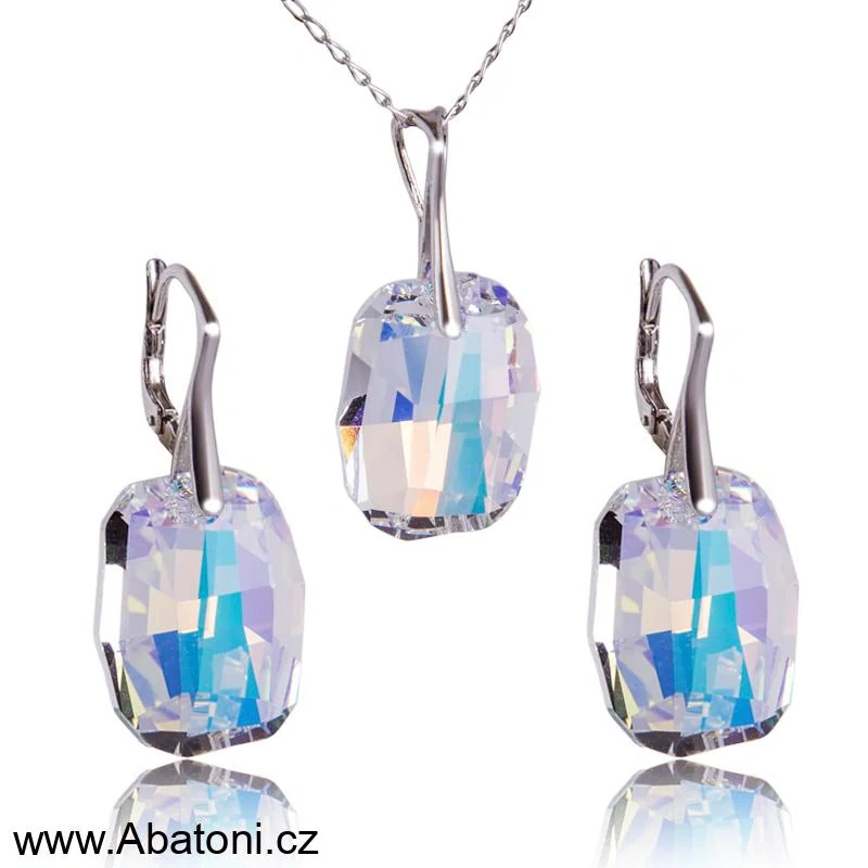 - Swarovski Elements Graphic krystal 19mm - Stříbrná sada (set, souprava) náušnice a přívěsek s řetízkem bílý duhový zkosený obdélník 39022.2 Crystal AB (bílá, křišťálová, duhová, měňavá)