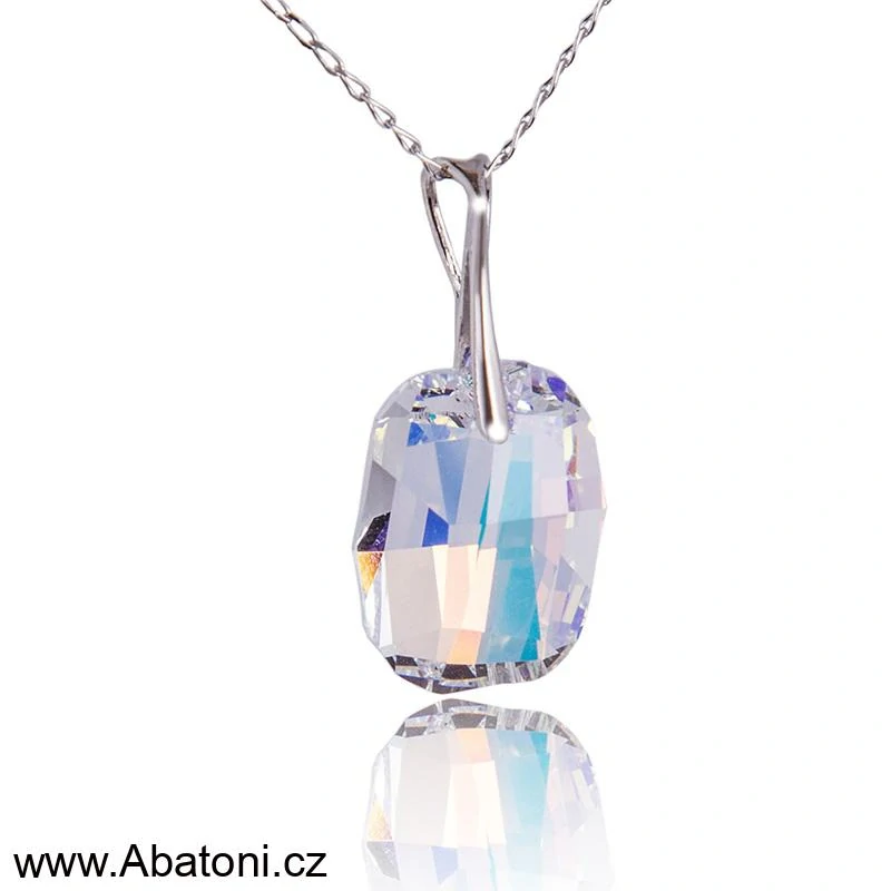 - Swarovski Elements Graphic krystal 19mm - Stříbrný náhrdelník (přívěsek + řetízek) bílý duhový zkosený obdélník 34254.2 Crystal AB (bílá, křišťálová, duhová, měňavá)
