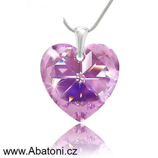 Swarovski Elements Heart krystal 14mm - Stříbrný náhrdelník (přívěsek + řetízek) fialové srdce, srdíčko 32079.3 Violet (fialová velmi světlá, lila)