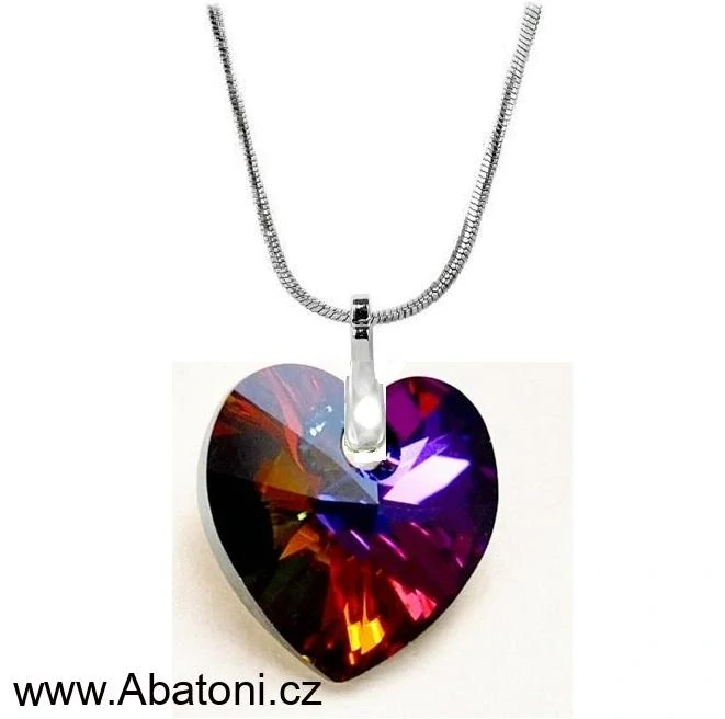 - Swarovski Elements Heart krystal 14mm - Stříbrný náhrdelník (přívěsek + řetízek) oranžovo modré srdce, srdíčko 34003.5 Volcano (oranžová, modrá, duhová, ohnivá)