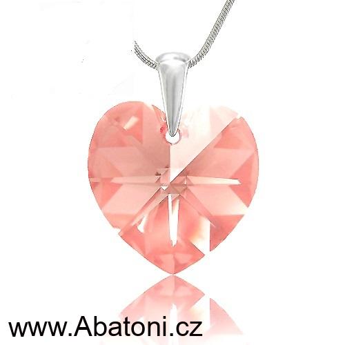 - Swarovski Elements Heart krystal 14mm - Stříbrný náhrdelník (přívěsek + řetízek) růžové srdce, srdíčko 32071.3 Light Rose (růžová světlá)