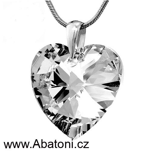 Swarovski Elements Heart krystal 18mm - Stříbrný náhrdelník (přívěsek + řetízek) bílé srdce, srdíčko 32071.1 Crystal (bílá, čirá, křišťálová)