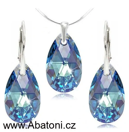 - Swarovski Elements Pear krystal 16+16mm - Stříbrná sada (set, souprava) náušnice a přívěsek s řetízkem modrá slza, kapka 39169.4 Aquamarine (modrá světlá, azurová, nebeská)