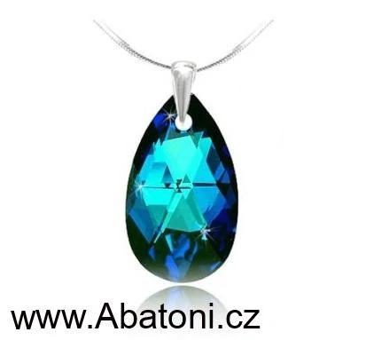 - Swarovski Elements Pear krystal 16mm - Stříbrný náhrdelník (přívěsek + řetízek) visací modrá slza, kapka 34252.3 Bermuda Blue (modrá, mořská, duhová, měňavá)