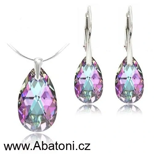 - Swarovski Elements Pear krystal 22+16mm - Stříbrná sada (set, souprava) náušnice a přívěsek s řetízkem fialová slza, kapka 39169.4 Vitrail Light (růžová, fialová, tyrkysová, duhová)