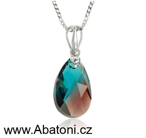 - Swarovski Elements Pear krystal 22mm - Stříbrný náhrdelník (přívěsek + řetízek) visací fialovo modrá slza, kapka 34252.3 Burgundy Blend Zircon Blue (fialová, bordó, vínová, tyrkysová, žíhaná)