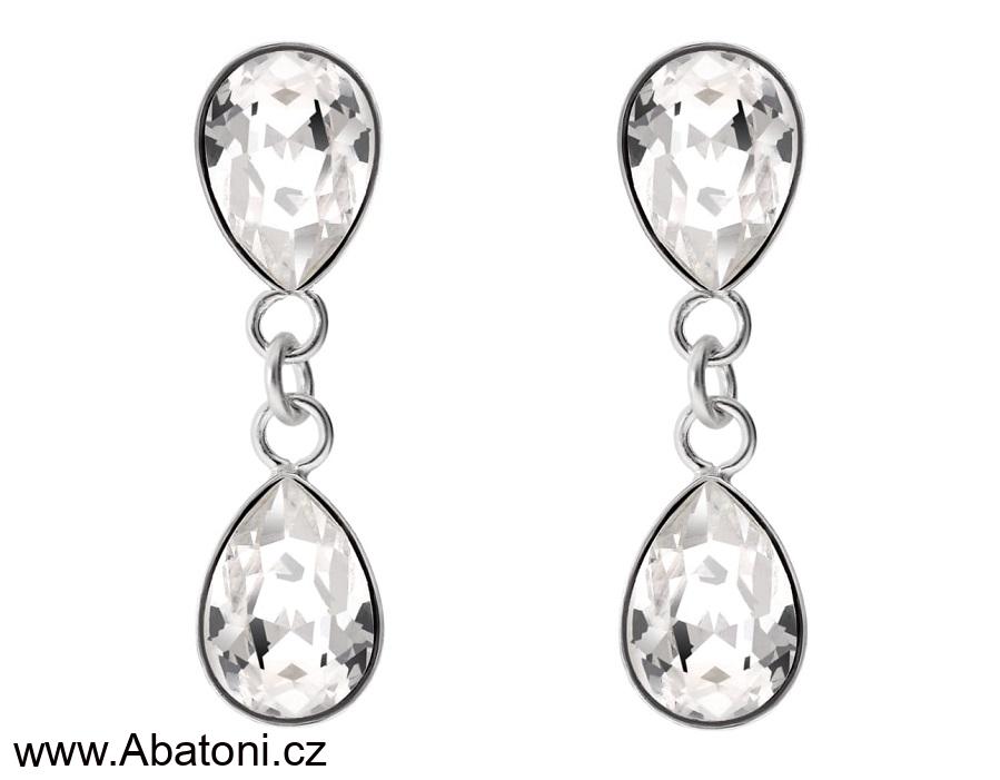 - Swarovski Elements Pear vlepený krystal 2x10mm - Stříbrné náušnice visací bimbací bílé dvojité slzičky, kapky 31231.1 Crystal (bílá, čirá, křišťálová)