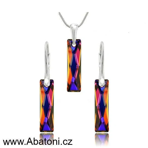 - Swarovski Elements Queen Baguette krystal 25mm - Stříbrná sada (set, souprava) náušnice a přívěsek s řetízkem oranžovo modrý obdélník 39022.2 Volcano (oranžová, modrá, duhová, ohnivá)