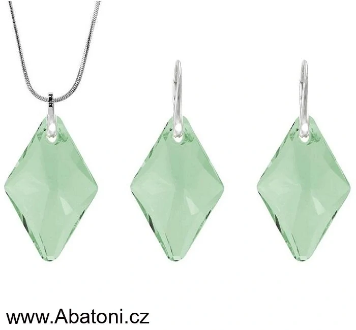 - Swarovski Elements Rhombus krystal XXL 27mm - Stříbrná sada (set, souprava) náušnice a přívěsek s řetízkem zelený kosočtverec 39126.3 Chrysolite (zelená světlá, mátová)