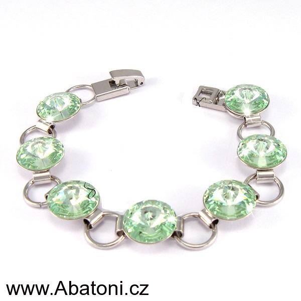 - Swarovski Elements Rivoli 12mm - Rhodiovaný náramek zelený 33111.1 Chrysolite (zelená světlá, mátová)
