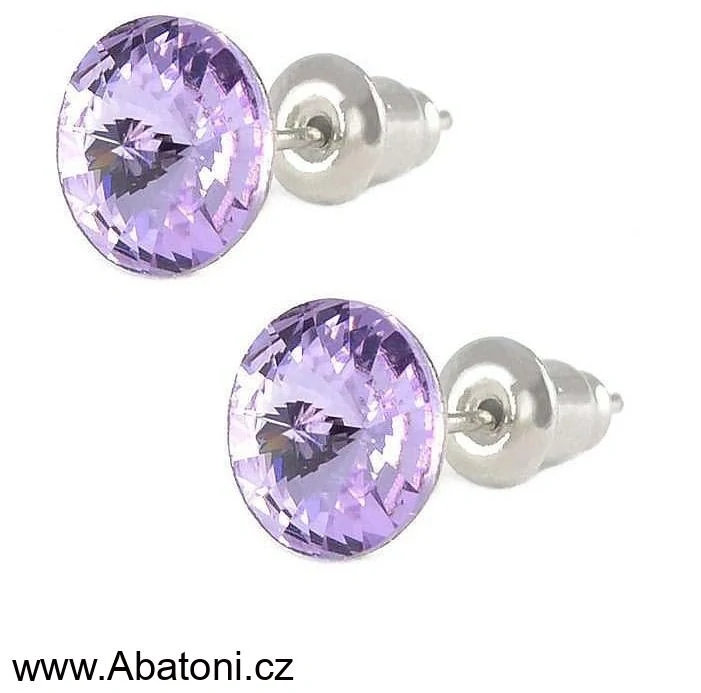 Swarovski Elements Rivoli vlepený krystal 12mm - Ocelové náušnice pecky puzety fialové kulaté 51037.3 Violet (fialová velmi světlá, lila)