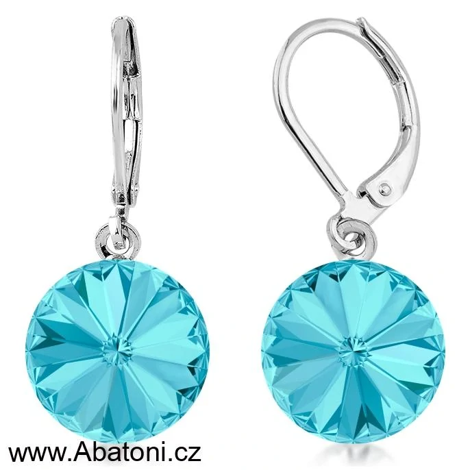 Swarovski Elements Rivoli vlepený krystal 12mm - Ocelové náušnice visací bimbací modré kulaté 31106.3 Aquamarine (modrá světlá, azurová, nebeská)Skladem199 Kč/ pár
