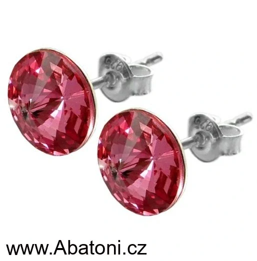 Swarovski Elements Rivoli vlepený krystal 12mm - Stříbrné náušnice pecky puzety růžové kulaté 51037.3 Rose (růžová)Skladem299 Kč/ pár