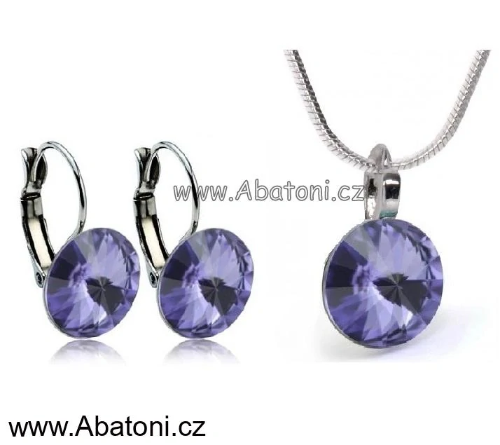 - Swarovski Elements Rivoli vlepený krystal 14+12mm - Stříbrná sada (set, souprava) náušnice a přívěsek s řetízkem fialové kulaté 39352.3 Tanzanite (fialová)