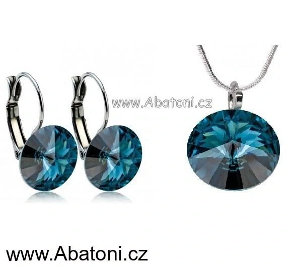 - Swarovski Elements Rivoli vlepený krystal 14+12mm - Stříbrná sada (set, souprava) náušnice a přívěsek s řetízkem modré kulaté 39140.3 Montana Blue (modrá tmavá, indigo, kobaltová)
