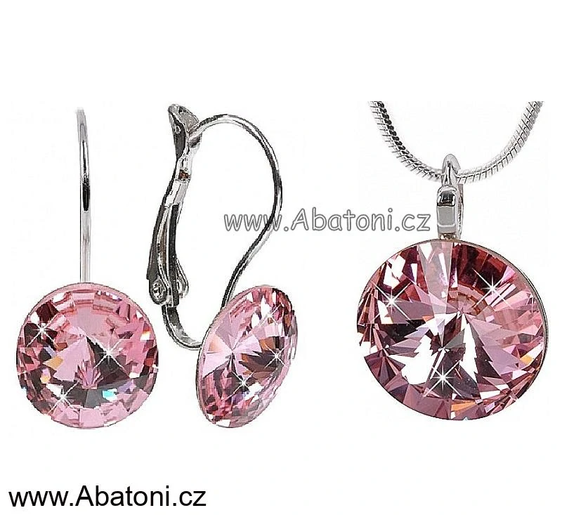 - Swarovski Elements Rivoli vlepený krystal 14+12mm - Stříbrná sada (set, souprava) náušnice a přívěsek s řetízkem růžové kulaté 39140.3 Light Rose (růžová světlá)