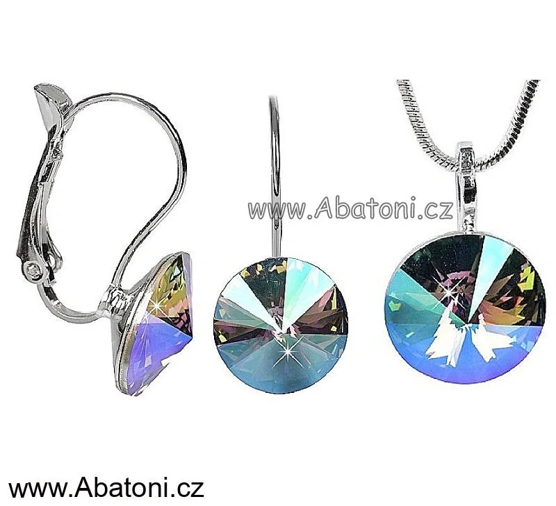- Swarovski Elements Rivoli vlepený krystal 14+12mm - Stříbrná sada (set, souprava) náušnice a přívěsek s řetízkem zelené fialové kulaté39352.5 Paradise Shine (zeleno-růžová, fialová, duhová, měňavá)