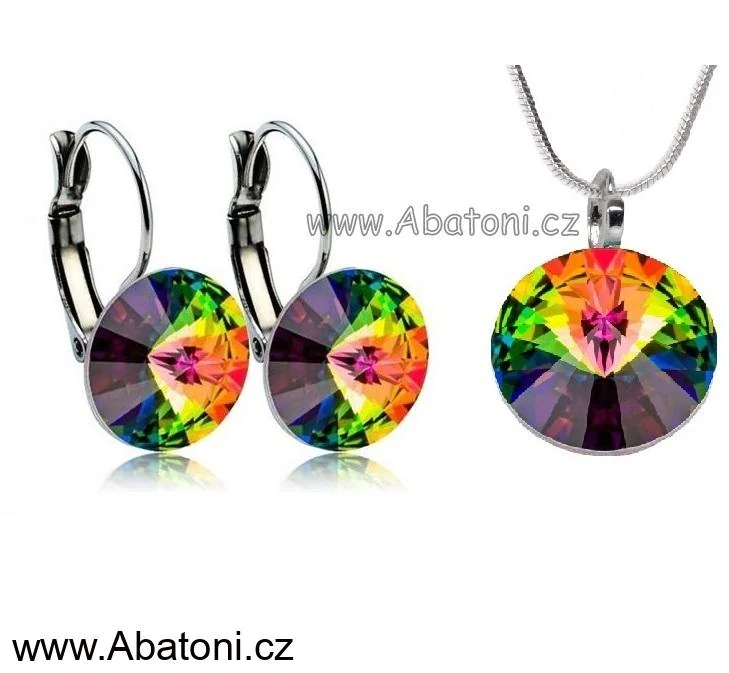 - Swarovski Elements Rivoli vlepený krystal 14+12mm - Stříbrná sada (set, souprava) náušnice a přívěsek s řetízkem zelené kulaté 39352.5 Vitrail Medium (zeleno-růžová duhová)