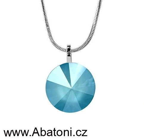 - Swarovski Elements Rivoli vlepený krystal 14mm - Stříbrný náhrdelník (přívěsek + řetízek) modrý kulatý 34112.3 Summer Blue (modrá mléčná, světlá azurová)
