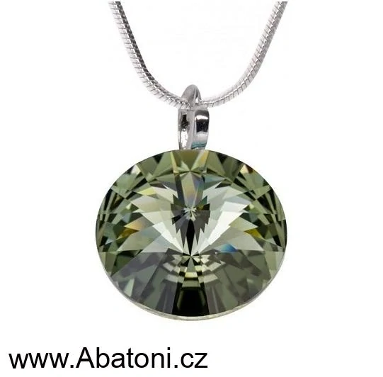 - Swarovski Elements Rivoli vlepený krystal 14mm - Stříbrný náhrdelník (přívěsek + řetízek) šedý kulatý 34112.3 Black Diamond (šedá, černá, kouřová)