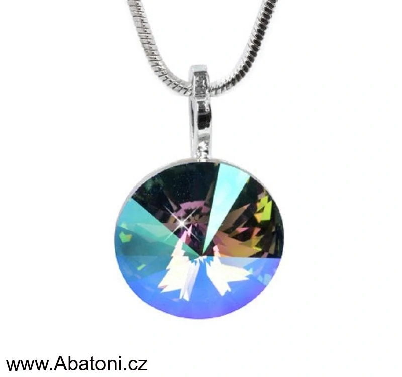 - Swarovski Elements Rivoli vlepený krystal 14mm - Stříbrný náhrdelník (přívěsek + řetízek) zelený fialový kulatý 54001.5 Paradise Shine (zeleno-růžová, fialová, duhová, měňavá)