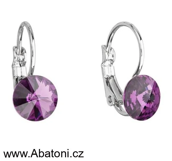 Swarovski Elements Rivoli vlepený krystal 8mm - Dětské Ocelové náušnice visací fialové kulaté 51002.3 Amethyst (fialová, bordó, vínová)Skladem199 Kč/ pár