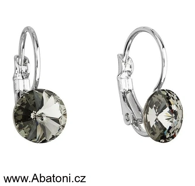 - Swarovski Elements Rivoli vlepený krystal 8mm - Dětské Ocelové náušnice visací šedé kulaté 51031.3 Black Diamond (šedá, černá, kouřová)
