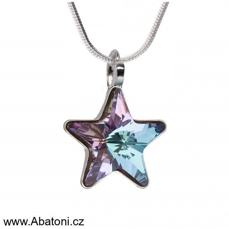 - Swarovski Elements Star vlepený krystal 10mm - Stříbrný náhrdelník (přívěsek + řetízek) fialová hvězdička 54034.3 Vitrail Light (růžová, fialová, tyrkysová, duhová)