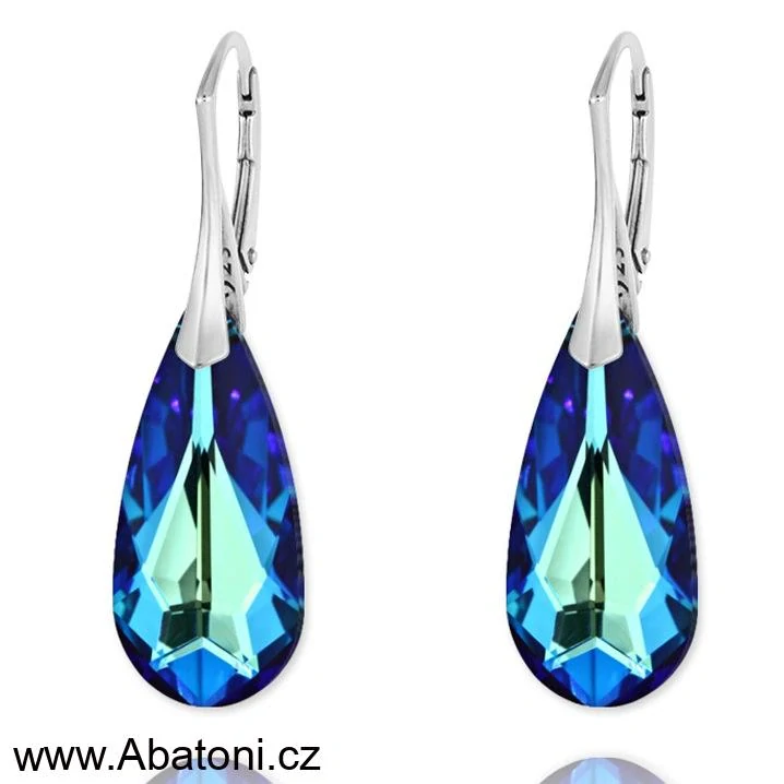Swarovski Elements Teardrop krystal 24mm - Stříbrné náušnice visací modrá slza, kapky 31215.5 Bermuda Blue (modrá, mořská, duhová, měňavá)Skladem699 Kč/ pár