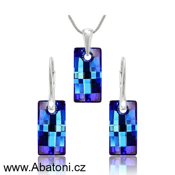 - Swarovski Elements Urban krystal 20mm - Stříbrná sada (set, souprava) náušnice a přívěsek s řetízkem modrý obdélník 39022.2 Bermuda Blue (modrá, mořská, duhová, měňavá)